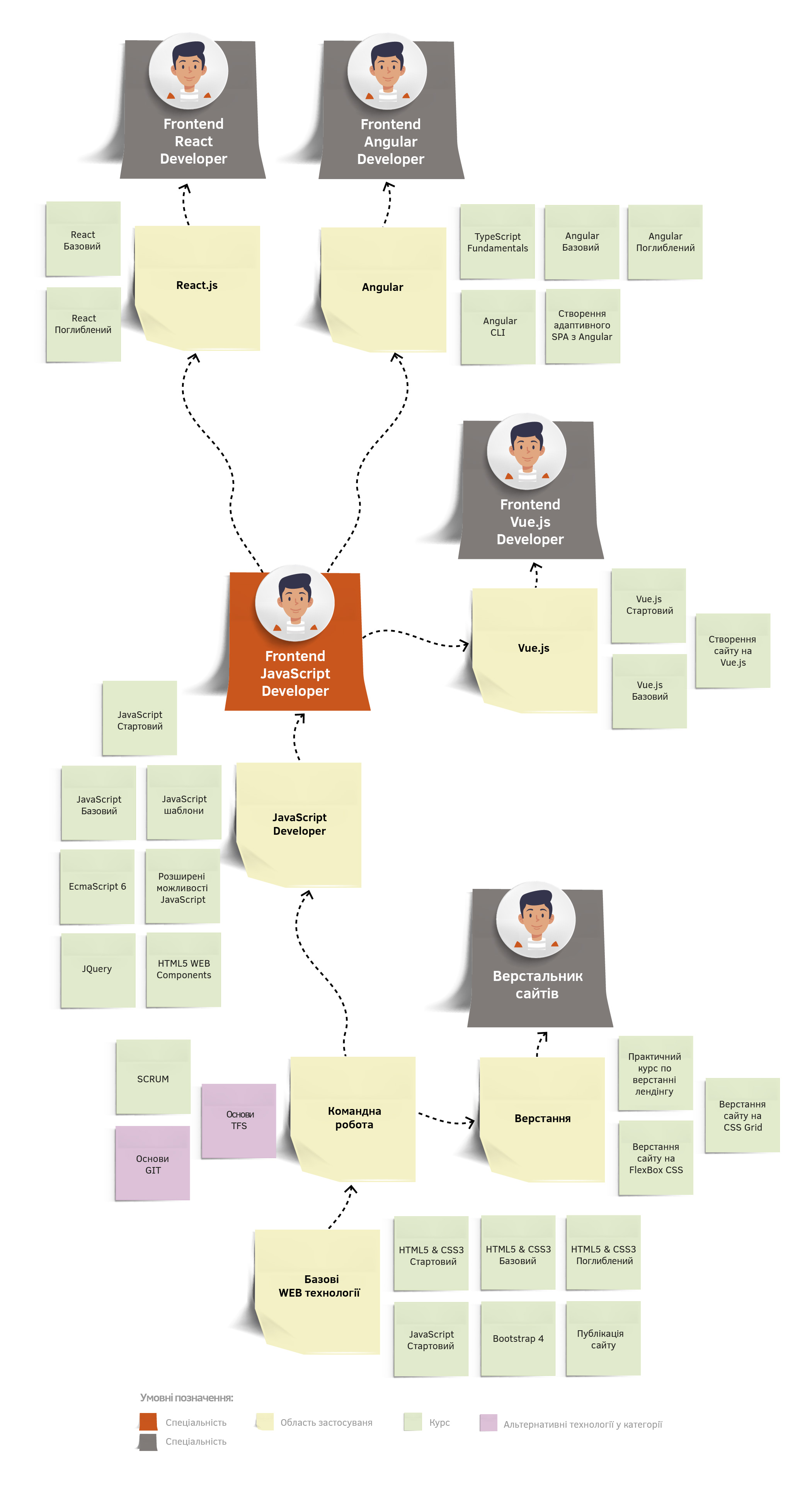 Рекомендуємо ознайомитися з матеріалами вебінару "Як стати Front-End розробником", щоб краще розуміти позицію мови JavaScript у сучасній веб-розробці.