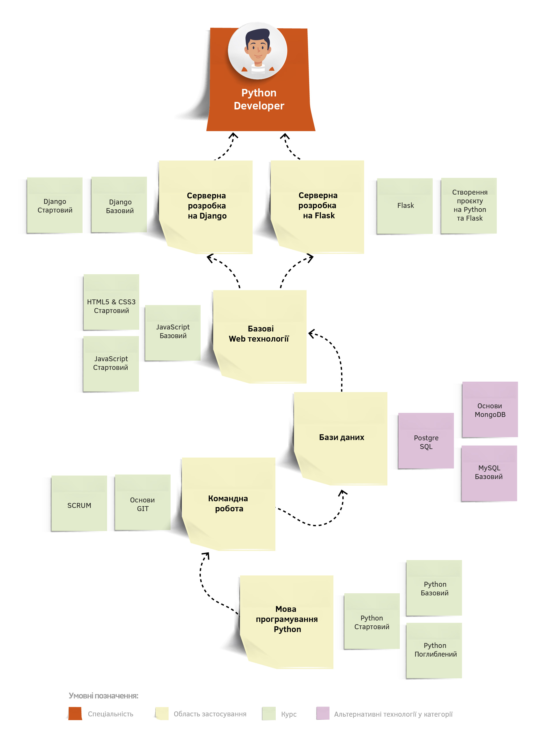 Оскільки найбільш популярним напрямком Python розроблення є веб-розроблення, розберемо шлях Python веб-програміста.